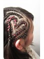 サイド全面を使ってハートのコーンロウを作りました♪ピンクのエクステも混ぜて、よりハートに♪