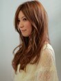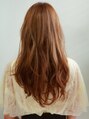 トップからレイヤーを入れて下は重めに残して全体にふんわりウェーブを入れたスタイル♪前髪は大人かわいい『センターパート』スソは重めに残していますので、トップのふんわり感にも柔らかさとまとまりを出しています。カラーはヌケ感あるミントベージュ。