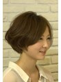 シャープ過ぎないふんわりとした前下がりボブです。トップにゆるめのパーマをかけカラーは重くならないように明るめにしてみました。