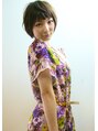 定番化しつつある、篠田麻里子さん風ボブからの進化版で、ベージュXスモーキーアッシュで柔らかさと、 透明感のあるカラーで。 ギリギリまで短く前髪を創ることで可愛らしい女性に。 前髪を短くする事に抵抗がある方も短め前髪にチャレンジしてみては☆