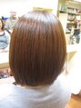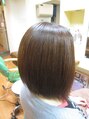 根元に強いうねりのくせです。くせは取りたいのですが、ボリュームは残したいというご希望です矯正は鈴木、カットは上村が担当しました。