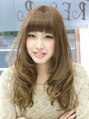 胸下ラインのロングでローレイヤーで重さを残します。前髪は目の上ラインでカット。大きめにフォワードにまいて甘さをオン!