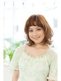 マッシュ×レイヤーのMIXスタイル。カラーはハニーオレンジの12レベルにハイライトをオン。短いマッシュバングに襟足の外ハネを入れた、ネオレイヤースタイルです。