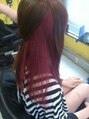 ツートンカラー☆髪の内側をビビッドなピンクに染めました。上からイエローブラウンの髪がかぶさるので、さりげなくキュートな色味を楽しめます♪♪