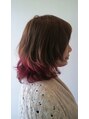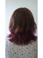 オレンジベージュをベースに毛先に細かいウィービングでチェリーレッドを入れました☆毛先のパーマできれいな動きがでます♪