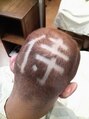 トップは6mm耳上からネープは3mmでバリカン、アートは侍の文字を入れました!!