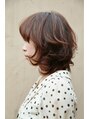 肩まで伸びた長さを生かし、ミックスパーマで動きのあるスタイルに。長く伸ばしていきたい方におすすめ。前髪は独立型バングで厚めにとり、丸みのあるアーチで可愛らしさを表現!一つ結びにしても、耳掛けにしても形が残るので楽ちんですよ。
