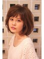 ゆるめの大き目ウェーブに、カラーはベージュ系です。髪の内側を軽くして、内巻きになりやすくしています。
