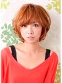 トップから大きめのパーマをかけたボブスタイル!オレンジベージュのカラーでツヤ感を演出♪