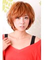 ローレイヤーのボブに大きめパーマをかけ、クシュふわ感を演出! オレンジベージュのカラーでツヤツヤに♪