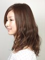 甘さを出しすぎないように、スモーキーなカラーリングで、重くなりすぎないように柔らかいダレ感のあるウェーブで仕上げています。