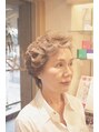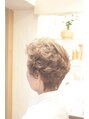 明るいブラウンをベースにウィービングを施し、フロントはポイントで白髪をのこしました。パーマで毛先を遊ばせ、跳ね上がる動きを出しています。パーマ&カラー¥16275