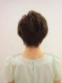 全体的に短くなりすぎないようにカットを施し、大きめのロッドでゆるめにパーマをかけます。