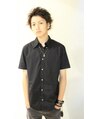サイドを刈り上げて、大胆に前髪をあげたワイルドヘア。前から見たときに襟足が少し見えるくらい残すのがポイント。カラーもダークトーンのアッシュ系カラーを使い若すぎなく、だけど遊びがある感じにする。