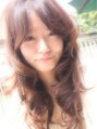 ふわっと柔らかな曲線のカールヘアに、華やかな印象を与えてくれるベージュ系カラーが夏の日差しに映えるツヤと軽やかさを感じさせてくれるスタイル♪
