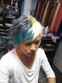 ブリーチ後ONシルバー・エメラルドグリーン・ホワイトをON♪♪どこから見ても派手カラーです♪♪