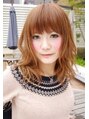 厚めバングのレイヤースタイル。柔らかい質感のウエーブを!ラフでスウィートな可愛らしさを演出します。スタイリングも簡単なのでオススメです!!