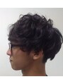 サイドとバックを刈り上げた2ブロ。パーマはルーズな感じにエッジのきいたスタイル!