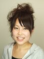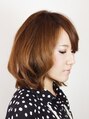 ボブベースの巻きスタイル。肩にかかる襟足をあえてハネさせて動きを出し、全体を内にゆる巻きすることで女性らしい甘さを強調しました。