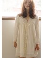 ミディアムのローレイヤースタイです毛先にクリープパーマをかけているので大きなカールが出ますよカラーは10レベルのアッシュオレンジで。