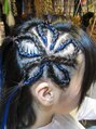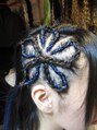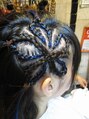 ブルーのエクステを混ぜた花のコーンロウです♪