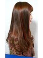 重めロングスタイルに表面と内側にローライトをプラスしてツヤ感を♪全体は7レベルのオレンジベージュで、ローライトはヴィヴィッドなオレンジレッドです。同色系にすることで、奇抜すぎずオシャレ度アップ◎