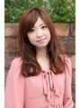 Aラインのシルエットに毛先に大きめにワンカール!ストレートスタイルに飽きてしっまった方必見!手入れの楽な毛先カールで上品な可愛らしいイメージに♪斜めバングが大人可愛いを演出!