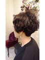 ゆるめのスパイラルパーマで大人ニュアンス。毛先の動きがナチュラルなハンサムショートスタイル。