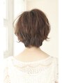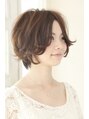 カラーはナチュラルブラウン。カットはショートボブをベースにトップからふんわり内巻パーマをあてて優しいイメージに。サイドやフロントにポイントで外ハネをMIXすることで無邪気な遊び感をプラス!