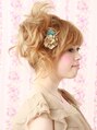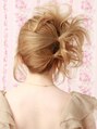 毛先をアイロンでゆるく巻いて、上下にわけた毛束をバランスをとりながわピンで立体的にアレンジしていきます。ふわふわとサイドに散らしたカールが華やかな印象に。前髪はふんわり自然に流します。サイドの後れ毛が女性らしいアップスタイル