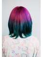 3ヶ月分のリタッチをブリーチして、全体も軽くブリーチしました。根本を薄めたパープル、毛先をMANICPANICの緑にしました。