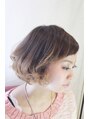 グラデーションカラーにグレイベージュをかぶせて毛先にゆるやかなパーマをかけました。