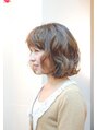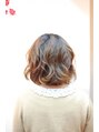 ボブベースにふんわりしたニュアンスパーマでひし型シルエット。フォワード・リバース交互のMIX巻きでランダムな動きをだしたスタイルです。