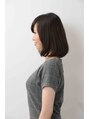 鎖骨ラインのボブベース。毛先は内側からスライドカットをして、毛先に動きと柔らかさを出す。