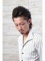 サイドを借り上げ、トップを長く残すツーブロックカットでメリハリが出て頭が小さく見えます☆明るいメッシュのカラーを入れると、硬い髪質でもやわらかく見えるので、ぜひ挑戦してみて♪ひし形フォルムも特徴です。