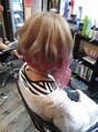 トップにはベージュ、内側にはピンクでカラーリング右サイドにエクステを数本装着してアシメ スタイルを作りました♪♪
