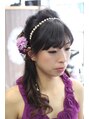 編み込みをいれたハーフアップスタイルです。カチューシャをいれた少し大人っぽいスタイルに仕上げました(^-^)vパープルのワンピースがとてもお似合いでした。