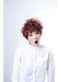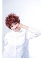 女の子をイメージして作りました。モデルの個性的なかわいらしい魅力をカットラインと毛束感でつくるちょっと個性的なスタイルです!決め手は、前髪の斜めに切ったパッツン!!
