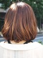 ボブというとついつい平面的なイメージをもってしまいますが、肩上ギリギリで毛先に柔らかな丸みをつけたスタイルはいかがでしょうか☆短すぎず動きを出す余裕のある長さなので女の子らしいふわふわしたボリュームを出すことも可能です★