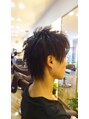 モデルさんの大人かっこいい雰囲気に合わせて、あまり遊ばせすぎず、スタイリッシュな感じに仕上げました☆ サイドはさり気なく流行りも取り入れツーブロックになっています(^-^) アッシュ系のカラーでよりクールな男気UPデス♪♪