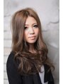 胸ラインのワンレングス、毛量が少ないため殆ど剥きを入れてません顔周りに少しレイヤーを入れる。そうするとリバースで巻いたときに流れが良くなる、カラーはベージュを全体に入れ、表面にハイライトをプラス。スタイルに動きが無い分、カラーで動きを出す
