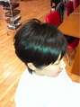 フロントはアシンメトリーバックからのボリュームとトップの動きでフロントのタイト感を強調しましたサイドを透けるくらい薄くして耳に掛けて完成ドライカット独特の動きと、バランスができたと思います