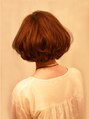 ショルダーレングスのローレイヤースタイルです。2種類のロットでアクアパーマをかけました。カラーはオレンジベージュで艶っぽく仕上げました。
