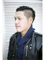 片方のサイドは大胆に刈り上げて、逆サイドとバックは骨格に合わせて刈り上げたスタイル。トップにはややレイヤーを入れて高さを出しています。