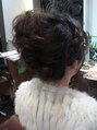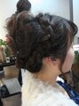 サイドはゆるめの編み込みを入れ後ろは大き目のカールを無造作に留め少し毛先散らしました。