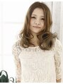 胸上のローレイヤーセミロング。大きめのロットで毛先からしっかりとウェーブをつくる。守ってあげたくなっちゃうようなふわふわウェーブがポイント。カラーは明るめのベージュブラウンで透明感をプラス。