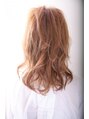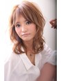 鎖骨したのミディアムにトップから放射状にレイヤーを入れ、フンワリと見せています。暖かい季節にピッタリのスタイルです!カラーはハニーイエローベージュ。柔らかくしなやかに見せる効果があります。