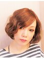- カットはやや前下がりのボブ。カラーはオレンジブラウン8トーン。