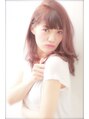 目力アップのバングとサイドパートでエッジをきかせたフェミニンなミディアムスタイルです。カラーはチェリーアッシュでツヤ感と柔らかをプラスしてます。