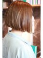一見シンプルなボブですが、頭のカタチが綺麗に見えるように骨格補正のカットが施されています。ウェットカットのみ、シザーのみでカットしました。ドライカットやセニングは全く使用しないのが特徴です。